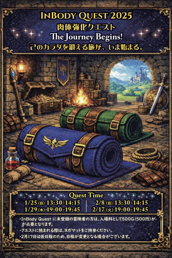 • クエスト参加時は、ヨガマットをご持参ください。